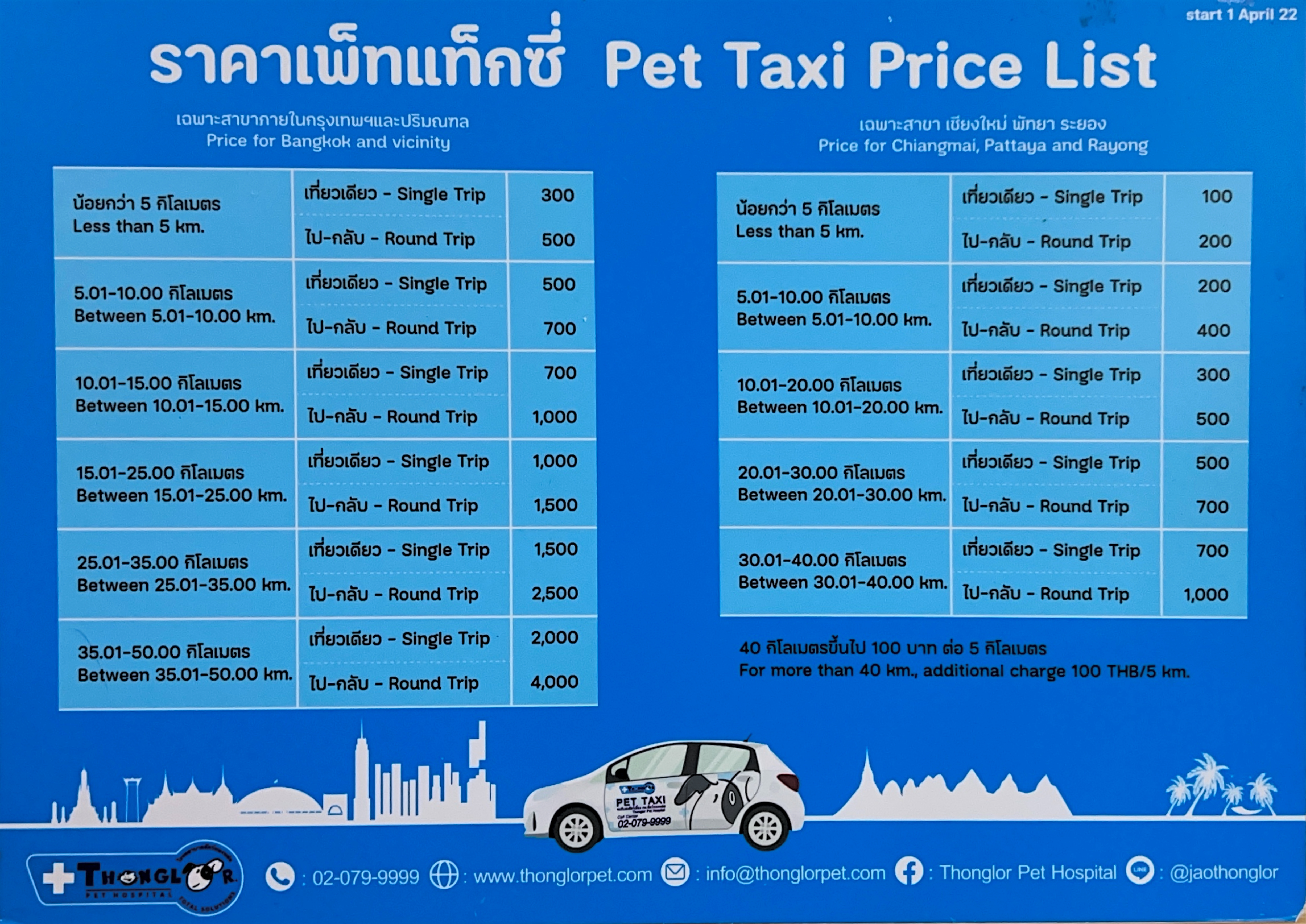 ค่าบริการรถรับส่งสัตว์เลี้ยง