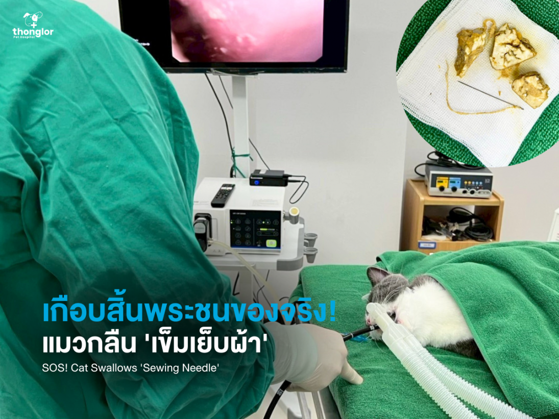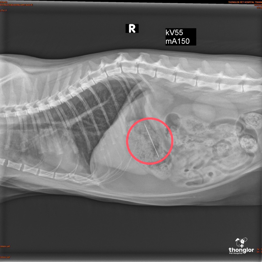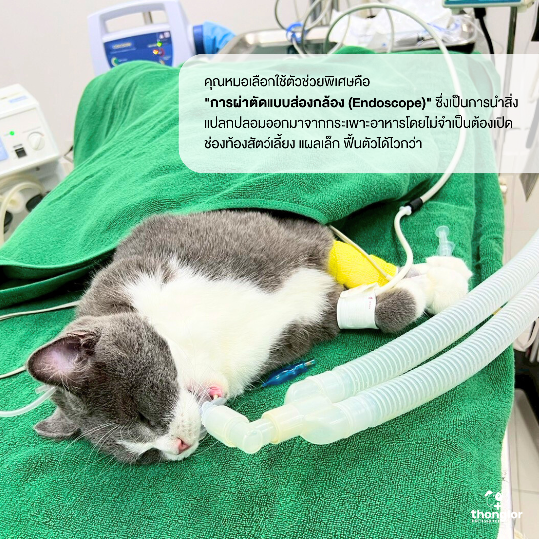 เมื่อมาถึง คุณหมอทำการวินิจฉัยโดยการ X-ray ทันที และพบเข็มเย็บผ้าอยู่บริเวณกระเพาะอาหารของน้อง แทนที่จะใช้การผ่าตัดเปิดช่องท้อง คุณหมอเลือกใช้ตัวช่วยพิเศษคือ "การผ่าตัดแบบส่องกล้อง (Endoscope)" ซึ่งเป็นการนำสิ่งแปลกปลอมออกมาจากกระเพาะอาหารโดยไม่จำเป็นต้องเปิดช่องท้องสัตว์เลี้ยง เทคนิคนี้ไม่ได้แค่ช่วยชีวิตน้องไว้ได้อย่างปลอดภัย แต่ยังลดบาดแผล และฟื้นตัวได้เร็วกว่าการผ่าเปิดช่องท้องอีกด้วย หลังจากการส่องกล้อง น้อง STORMY ได้เข้าพักฟื้นเพื่อสังเกตอาการอย่างใกล้ชิดใน ห้อง ICU เป็นเวลา 1 คืน เพื่อให้มั่นใจว่าไม่มีภาวะแทรกซ้อนใด ๆ เกิดขึ้น วันรุ่งขึ้นน้องก็สามารถกลับบ้านได้อย่างปลอดภัยแล้วค่ะ